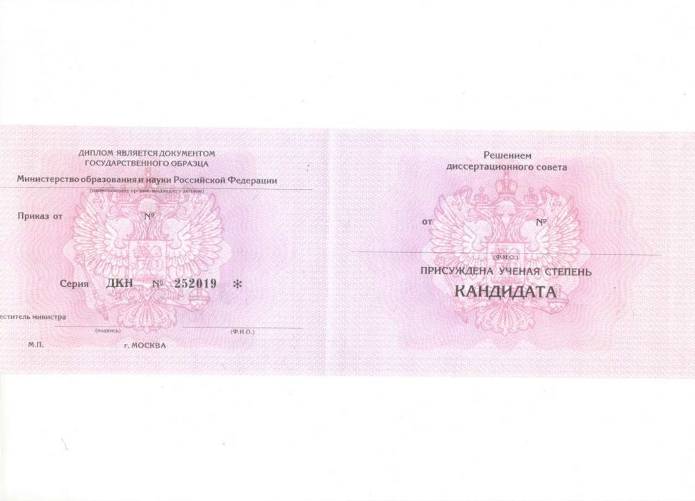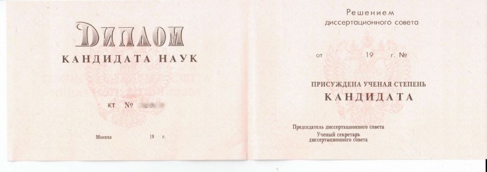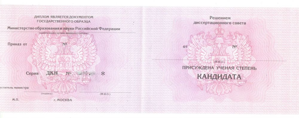 Форма диплома кандидата наук образца 2008-2011 года утверждена приказом, изданным Минобрнауки в июне 2011 года, для документа установлен уровень защиты «А». Наша компания, предлагает клиентам из всех городов Российской Федерации купить диплом кандидата наук по доступной цене.