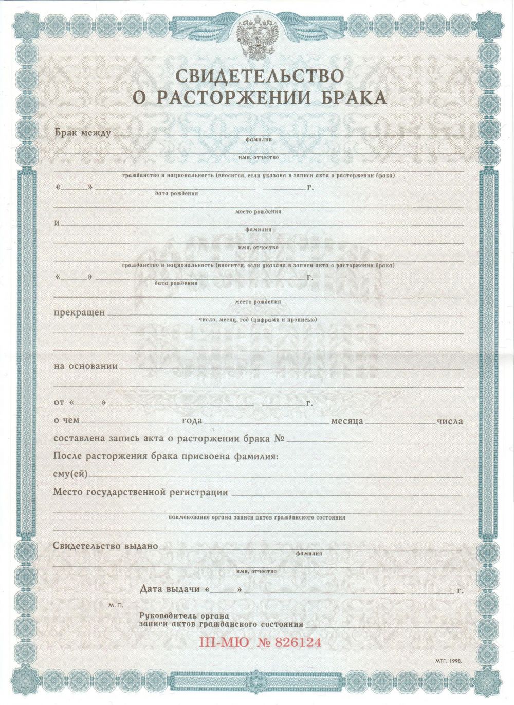 Особенности бланка свидетельства о расторжении брака